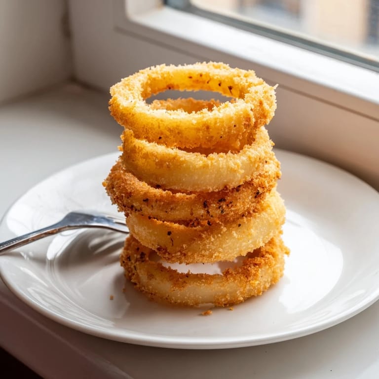 Save to Pinterest My teenage job at a roadside diner taught me more about onion rings than any cookbook ever could. The head cook, a weathered man named Earl who'd been working the fryer since before I was born, showed me how the batter should cling to the onion like a second skin. He said the secret was cold everything—cold bowl, cold water, cold hands—and he wasn't wrong. These days, I still use his technique whenever I crave that perfect crunch.